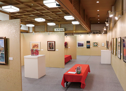 山が色とりどりに紅葉して美しく彩る行楽シーズンに、本展の会場となった清水寺の圓通殿には日本画、洋画、彫刻、工芸、書道、写真などの幅広い表現で魅せる全153作品が並びました。会期を通して訪れた多くのご来場者は、清水寺という歴史的な名所に集まった芸術的な表現の数々に、伝統と革新を併せて感じ取り、心から作品鑑賞を楽しんでいる様子でした。