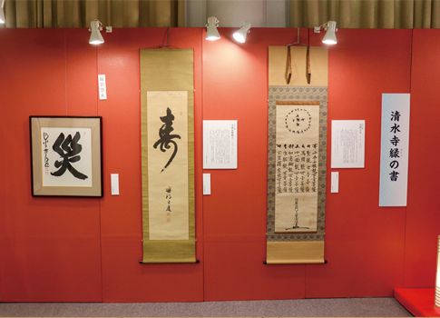 また各ジャンルの作品に加え、清水寺住職・森清範貫主による「今年の漢字一字(2018年)」や、歴代の清水寺住職の格調高い書を特別展示。幕末期に尊王愛国の思想を志し、維新の功労者となった月照上人の作品は観音様のありがたい御宝号を記した《七観音宝号》を、大衆に寄り添い分かりやすい言葉で仏法を説いた昭和の名僧・大西良慶和上の作品は、めでたい《寿》という一語をお寺よりお借りしてご覧いただきました。