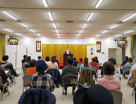 会場には各ジャンルの作品に加え、清水寺住職・森清範貫主や歴代の清水寺住職による貴重な書が特別展示されました。幕末期に尊王愛国の思想を志した勤王の僧、月照上人の作品は、智慧の威徳を示す獅子に乗った文殊菩薩図で、「良慶さん」として大衆に慕われた昭和の名僧・大西良慶和上の、鮮やかな聖徳太子像が描かれた画賛を展示。そして森清範貫主による、コロナ禍の世相を表した、「今年の漢字一字(2020年)」の《密》が展示されました。